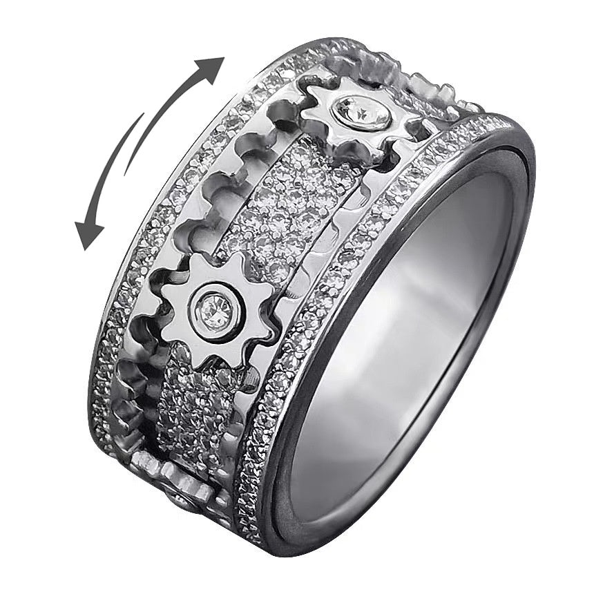 แหวนหมุนเฟืองกลไก – เงิน S925 + เพชร CZ